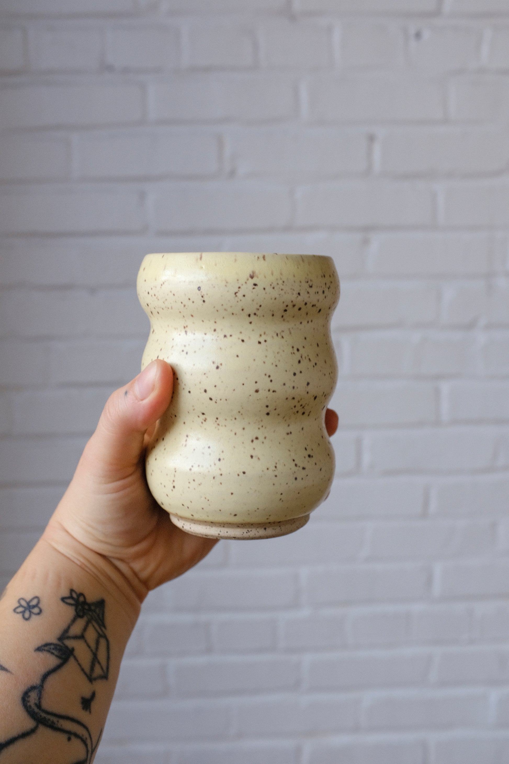 The curves of this tumbler make it perfect to hold, its such a comfy cup! It can also be used as a small vase or holder.