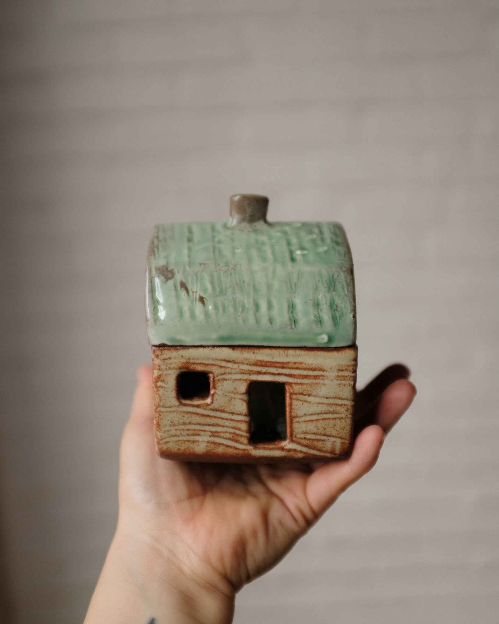 Handmade little incense or candle house. The roof is removable and you can put in a candle or a little piece of incense.