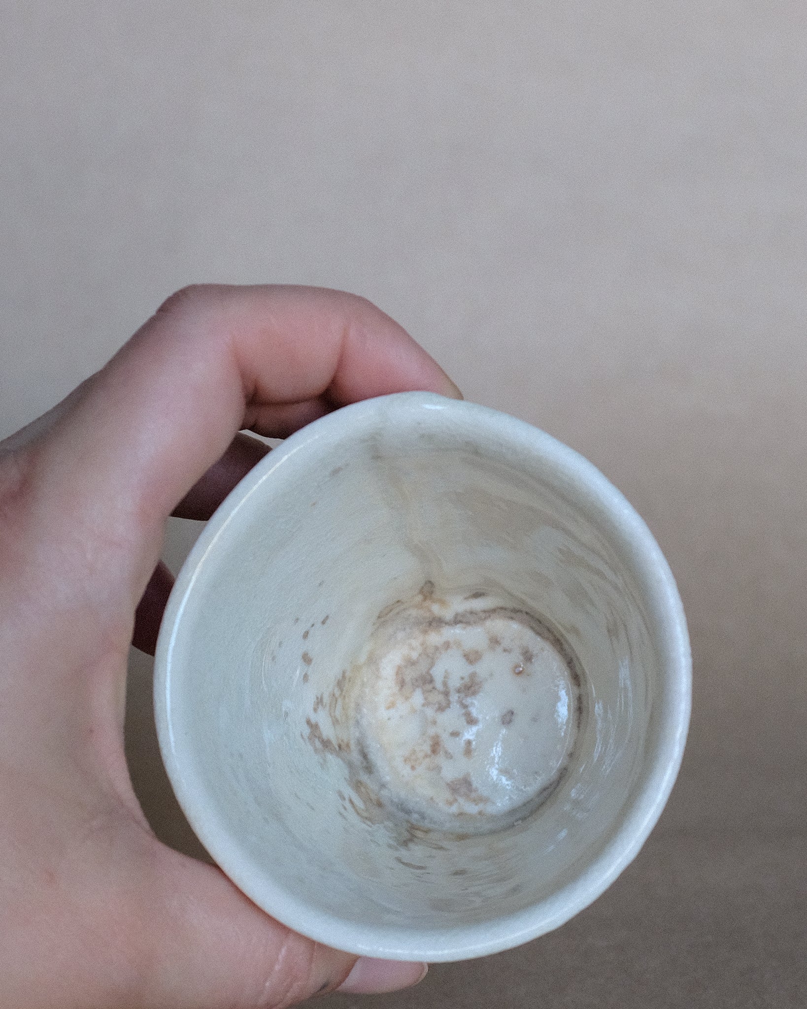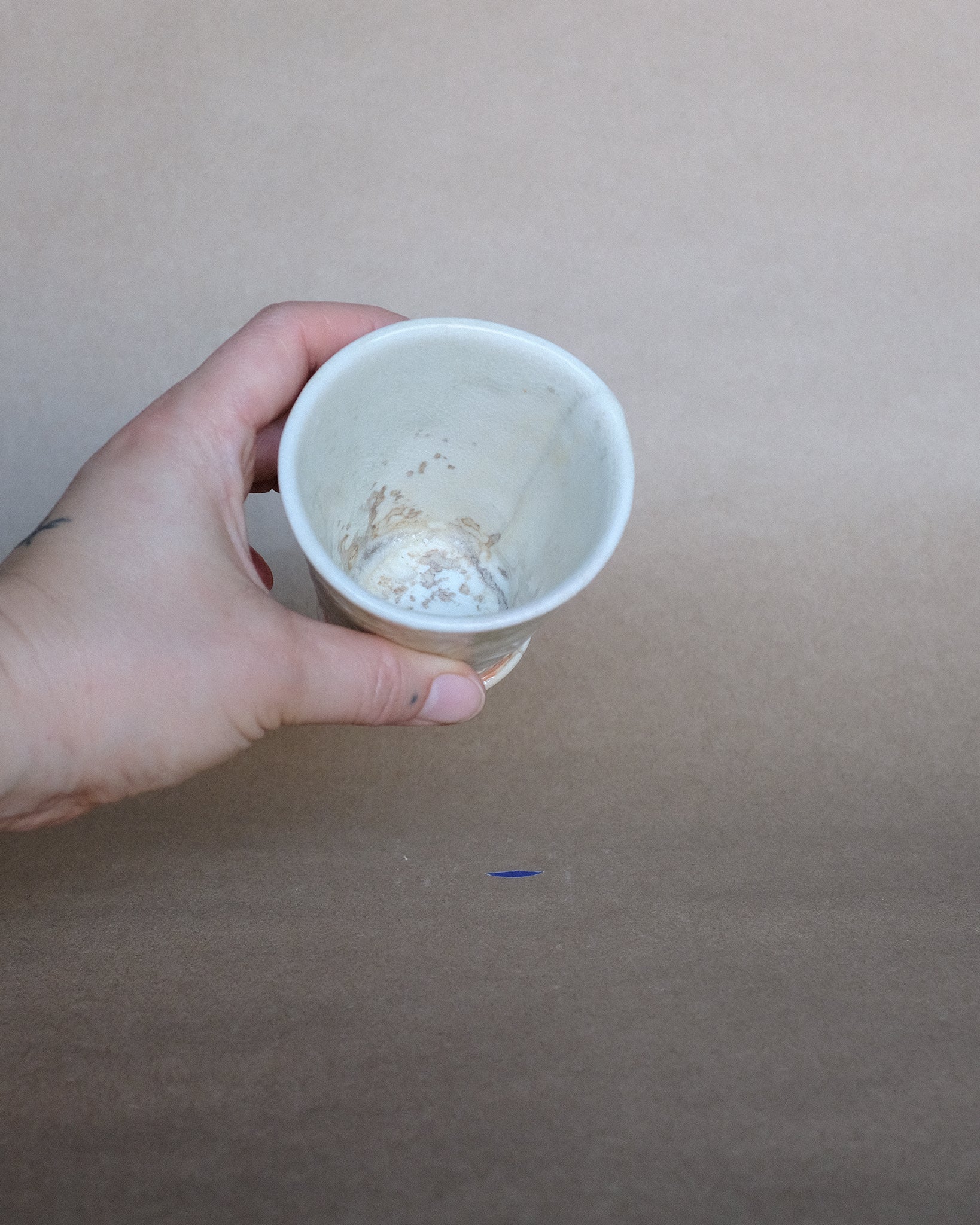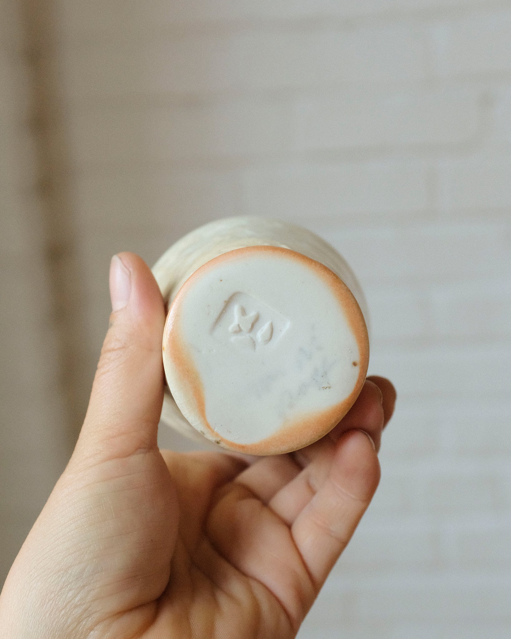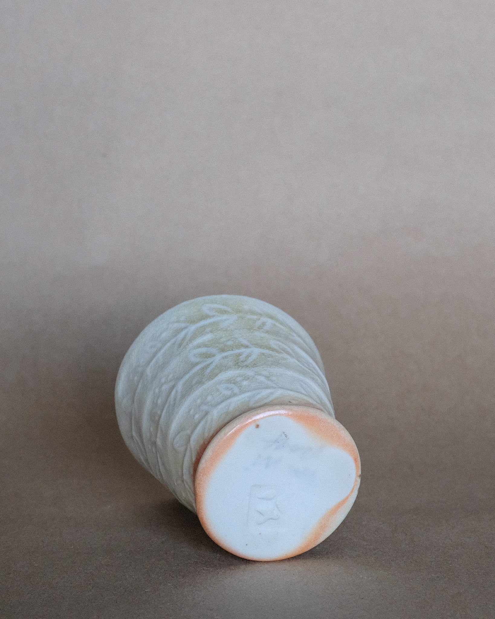 Petite tasse fabriquer en porcelaine, façonnage à la plaque avec motifs. Décorer avec un émail à base de cendre de bois.